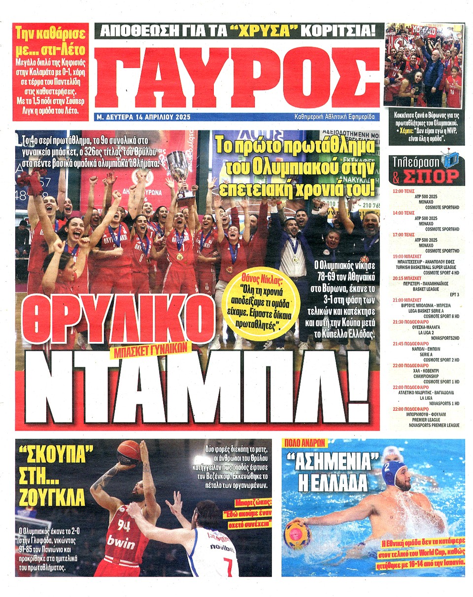 ΠΡΩΤΑΘΛΗΤΗΣ - 14 Απριλίου 2025