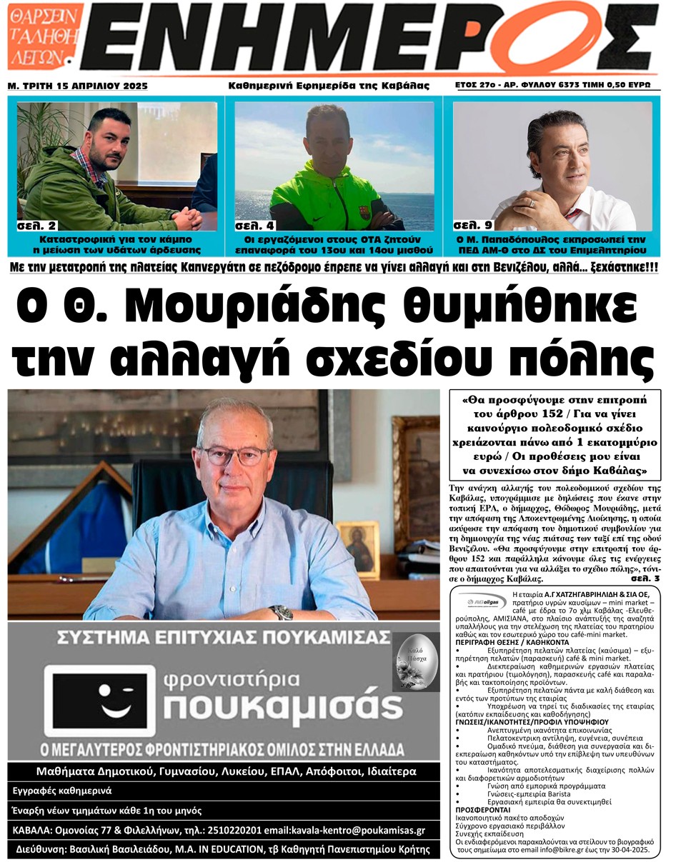 ΕΝΗΜΕΡΟΣ - 15 Απριλίου 2025