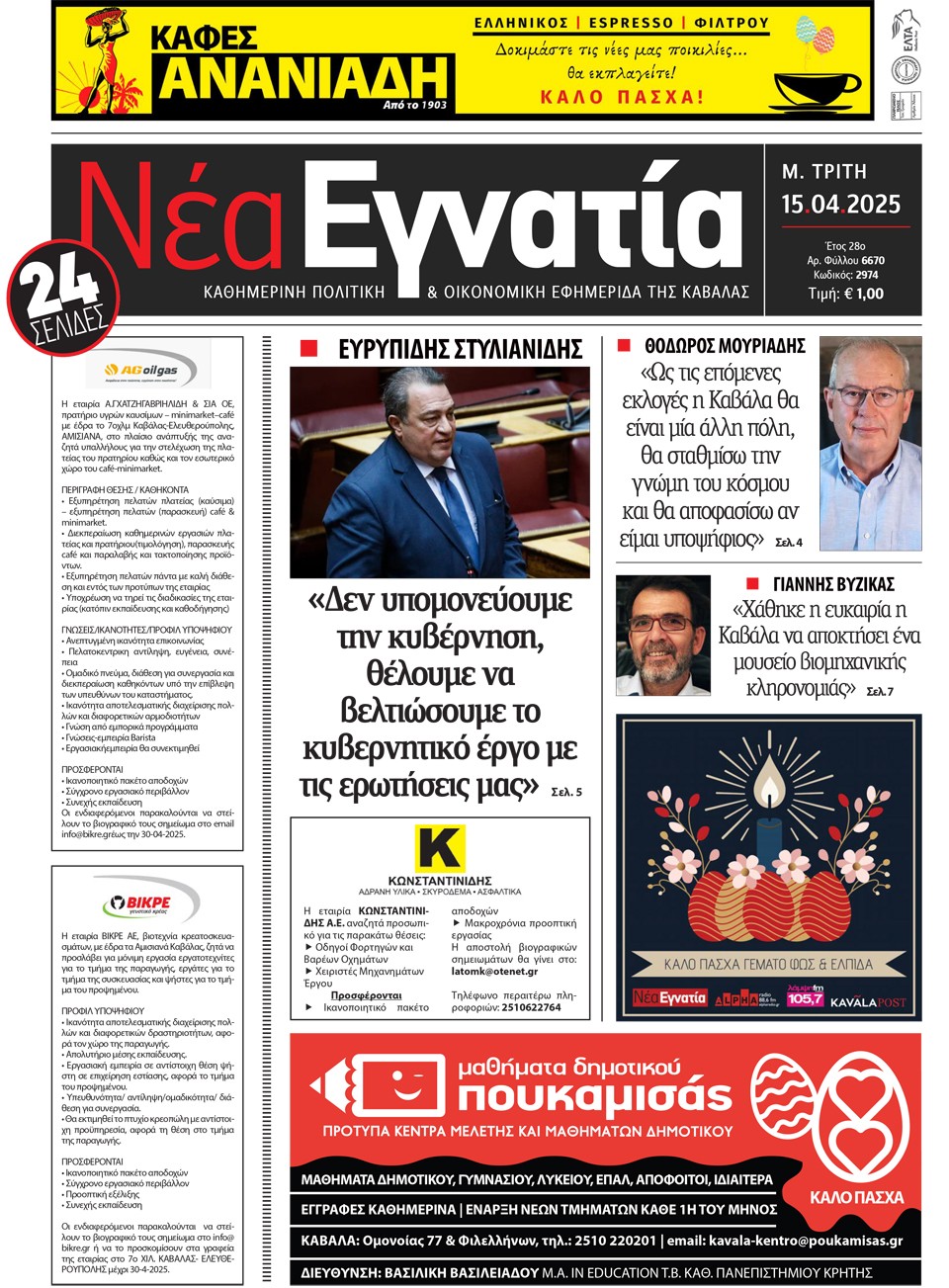 ΝΕΑ ΕΓΝΑΤΙΑ - 15 Απριλίου 2025