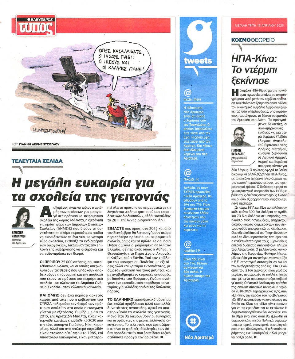 ΕΛΕΥΘΕΡΟΣ ΤΥΠΟΣ - 15 Απριλίου 2025