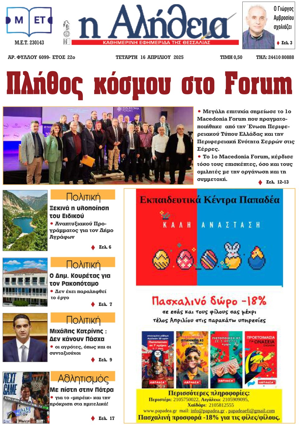 Η ΑΛΗΘΕΙΑ - 16 Απριλίου 2025