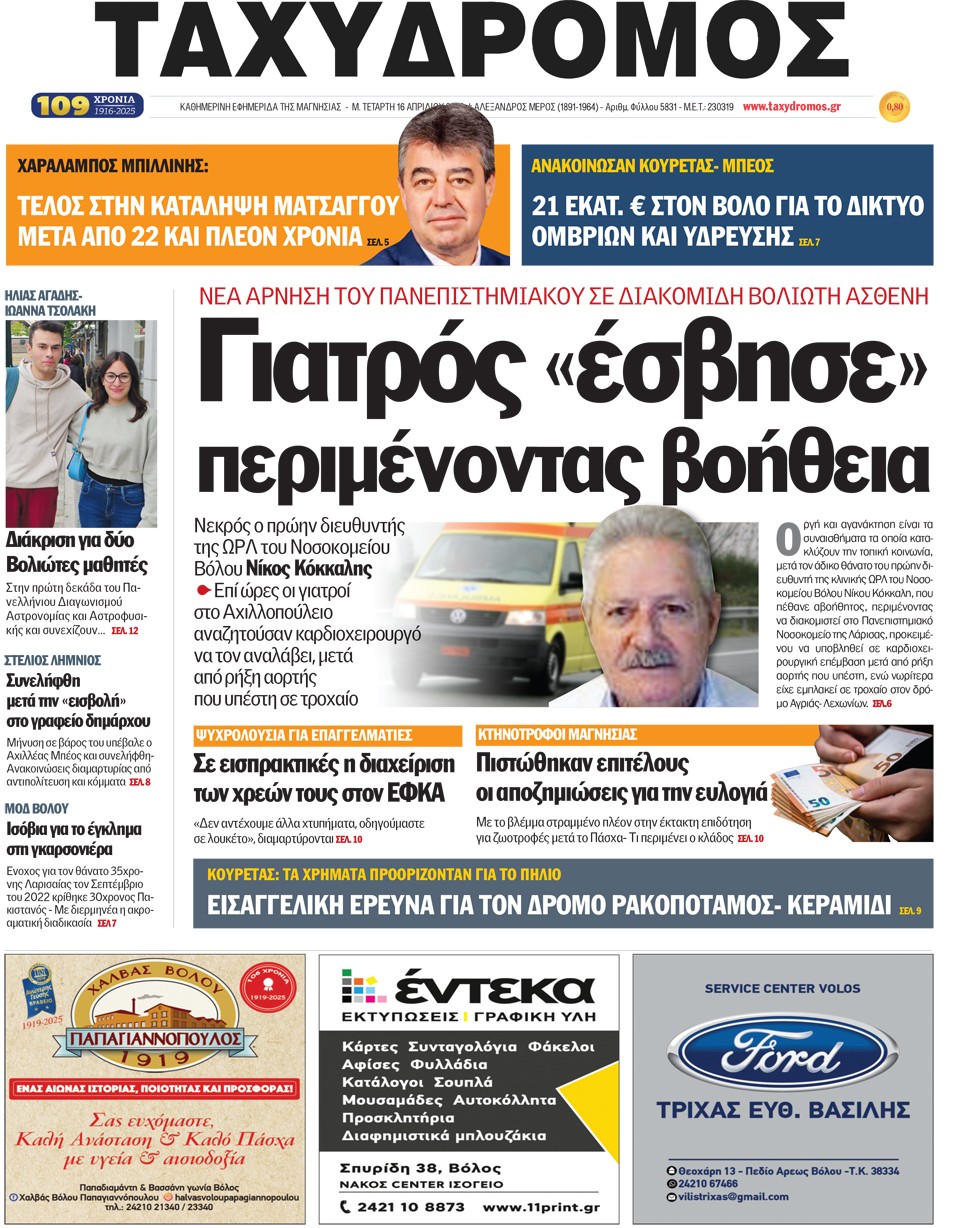 ΤΑΧΥΔΡΟΜΟΣ - 16 Απριλίου 2025
