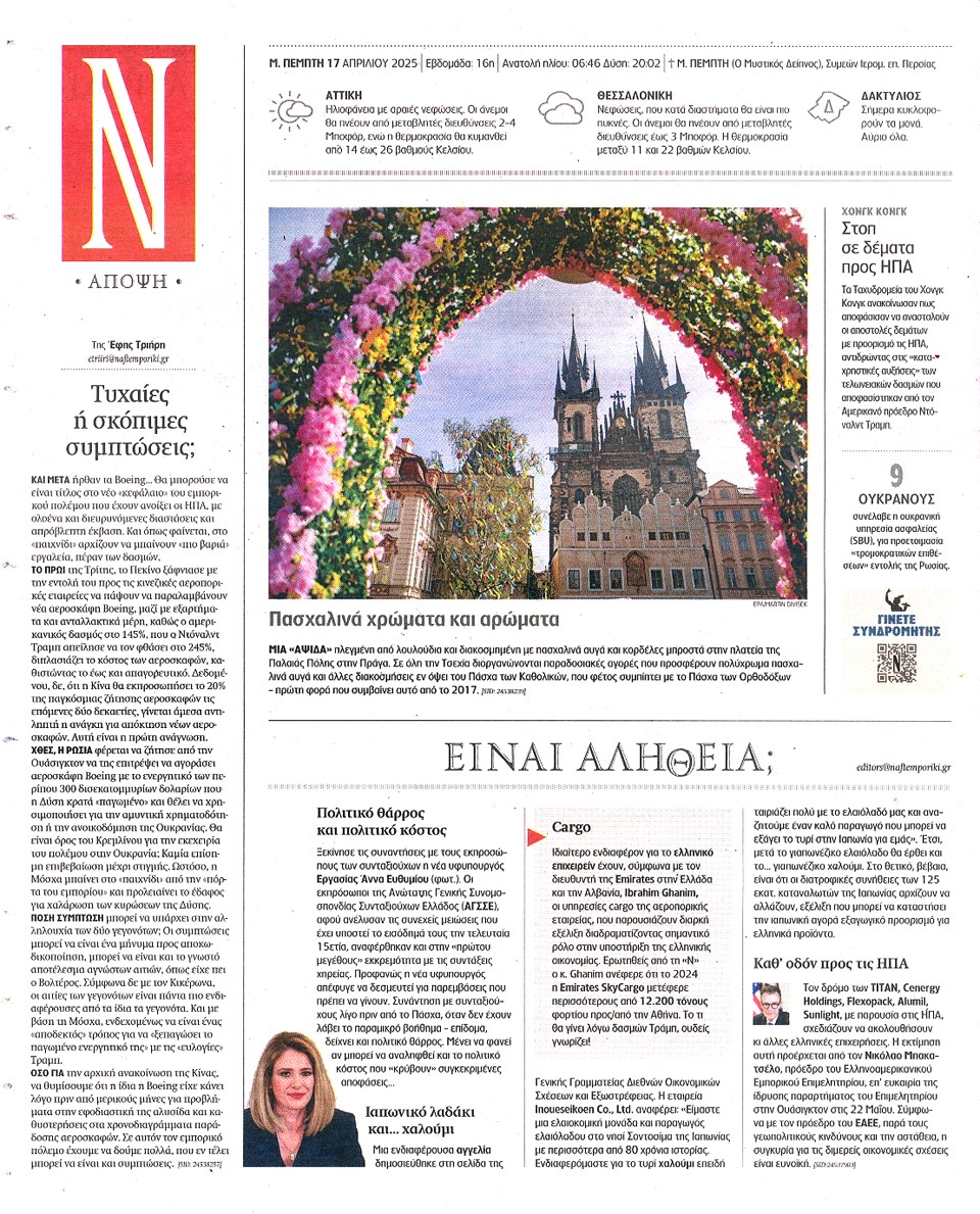 ΝΑΥΤΕΜΠΟΡΙΚΗ - 17 Απριλίου 2025