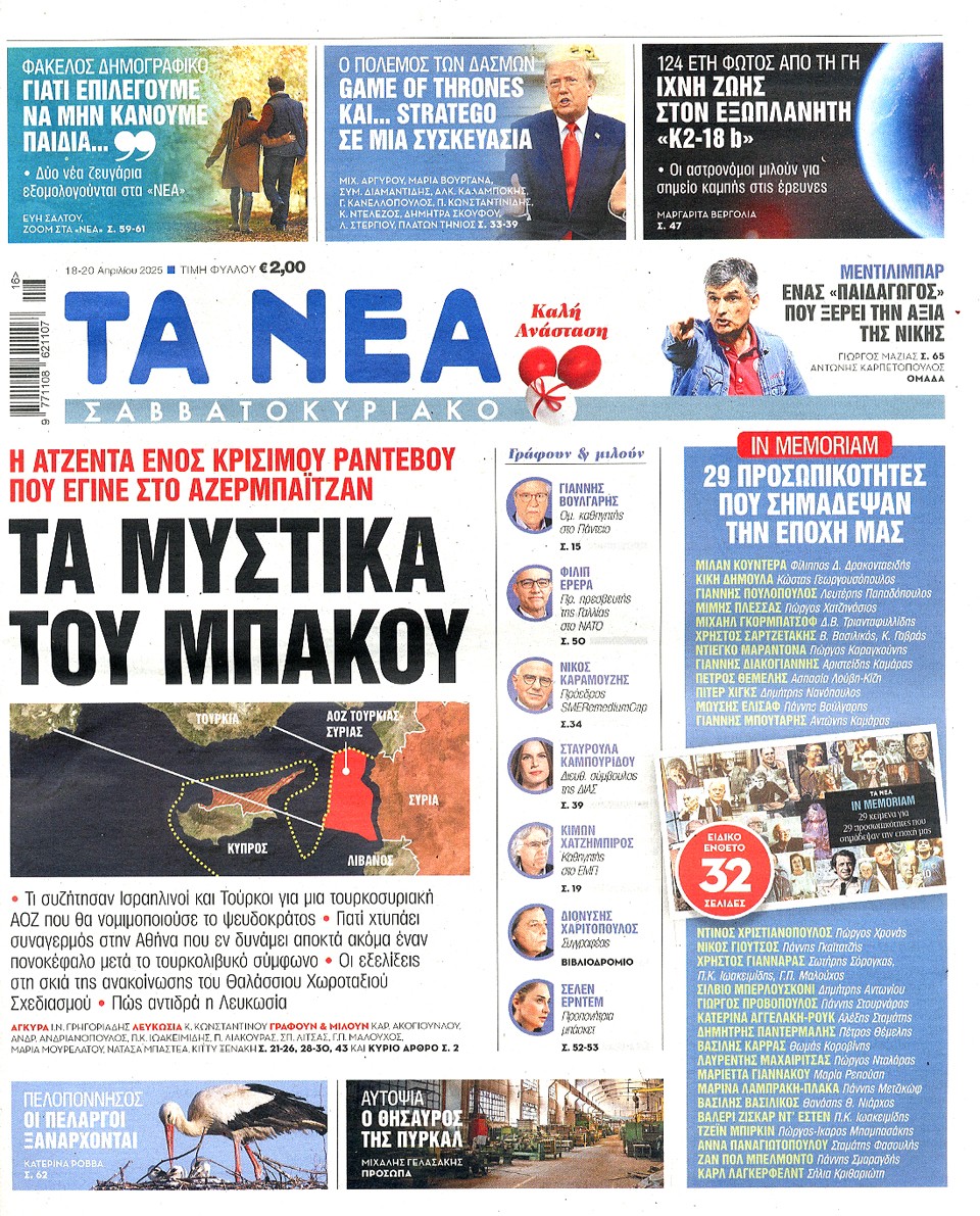 ΤΑ ΝΕΑ - 18 Απριλίου 2025