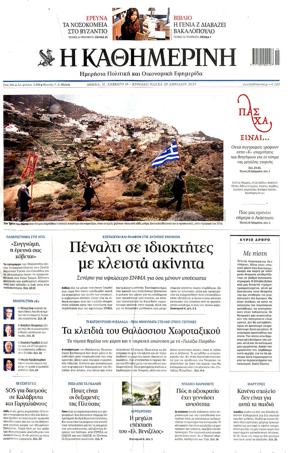 ΚΑΘΗΜΕΡΙΝΗ ΤΗΣ ΚΥΡΙΑΚΗΣ - 19 Απριλίου 2025