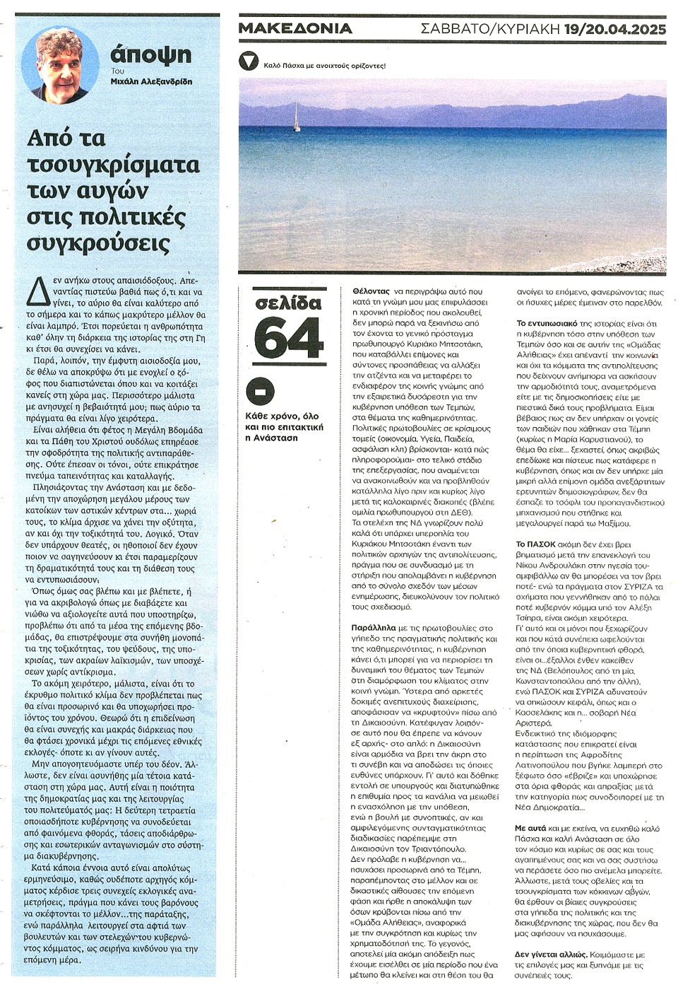 ΜΑΚΕΔΟΝΙΑ ΤΗΣ ΚΥΡΙΑΚΗΣ - 19 Απριλίου 2025