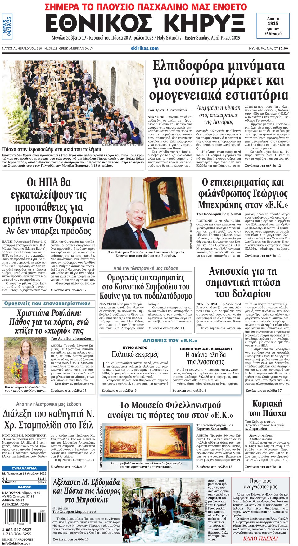 ΕΘΝΙΚΟΣ ΚΗΡΥΞ - 19 Απριλίου 2025