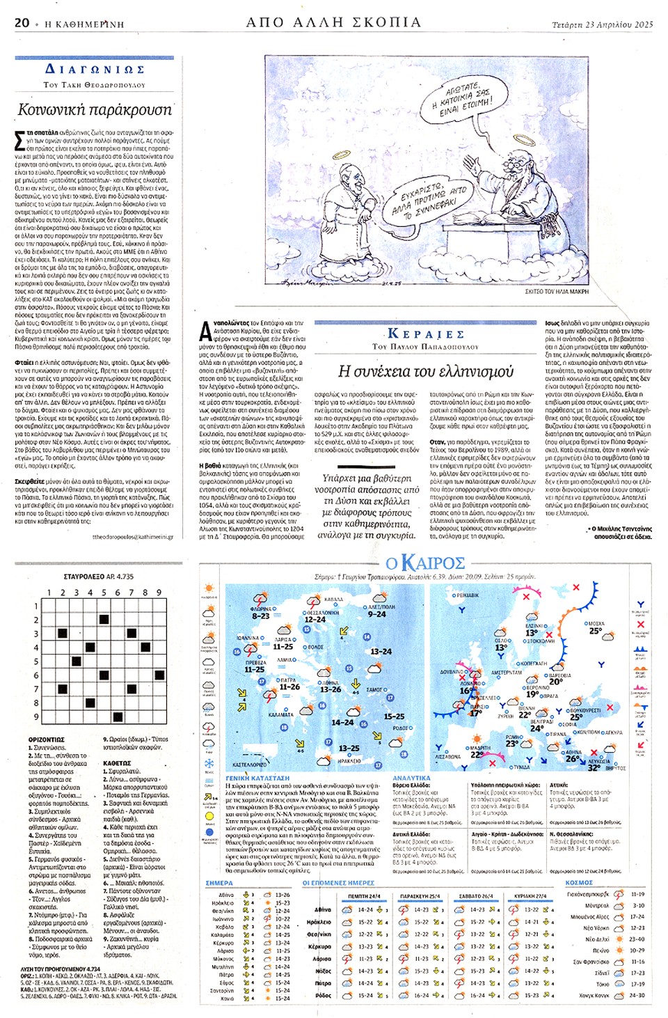 ΚΑΘΗΜΕΡΙΝΗ - 23 Απριλίου 2025