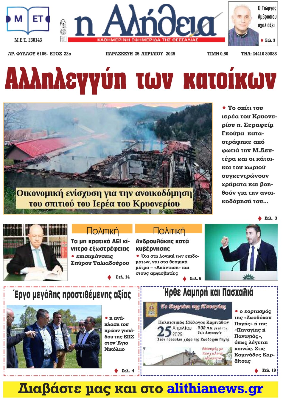 Η ΑΛΗΘΕΙΑ - 25 Απριλίου 2025