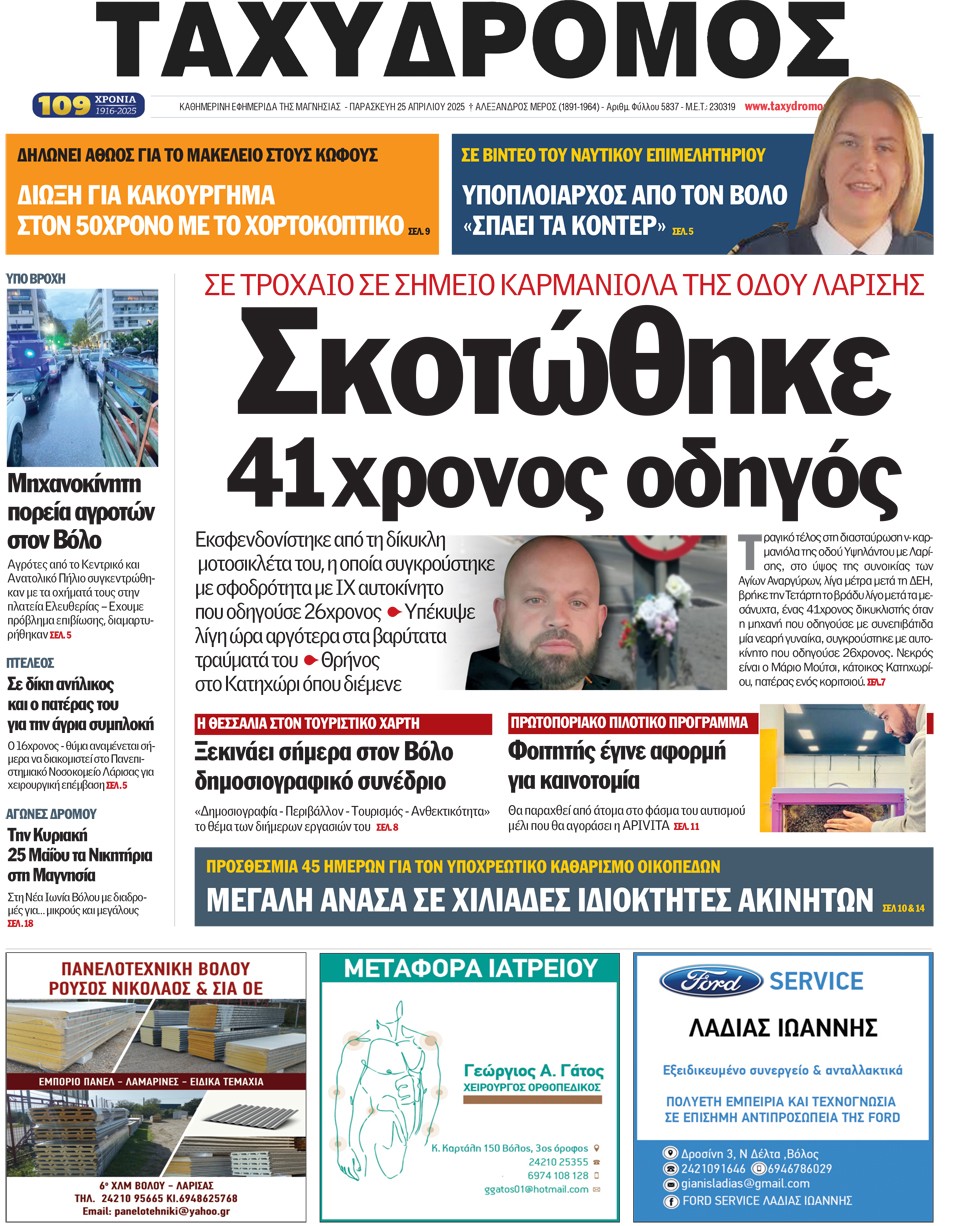 ΤΑΧΥΔΡΟΜΟΣ - 25 Απριλίου 2025