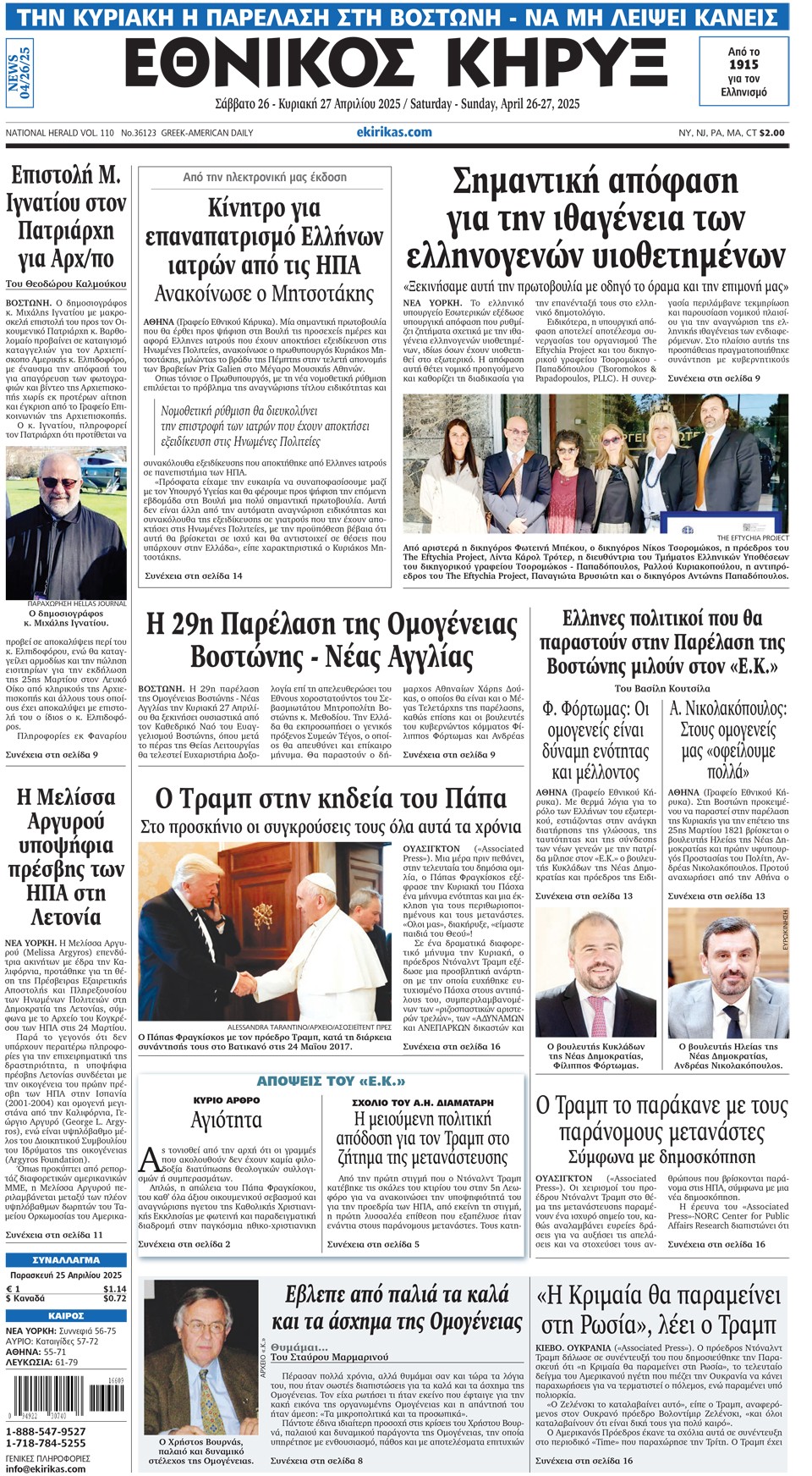 ΕΘΝΙΚΟΣ ΚΗΡΥΞ - 26 Απριλίου 2025