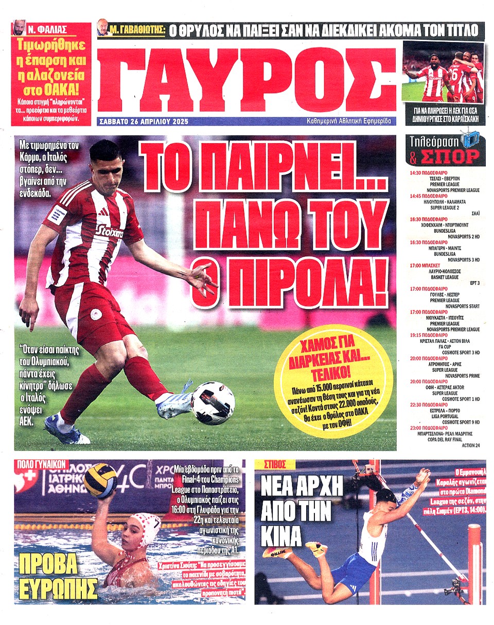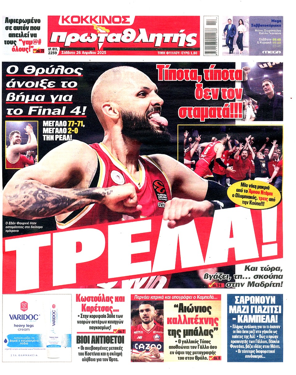 ΠΡΩΤΑΘΛΗΤΗΣ - 26 Απριλίου 2025