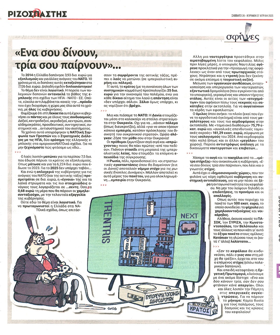 ΡΙΖΟΣΠΑΣΤΗΣ ΤΗΣ ΚΥΡΙΑΚΗΣ - 26 Απριλίου 2025
