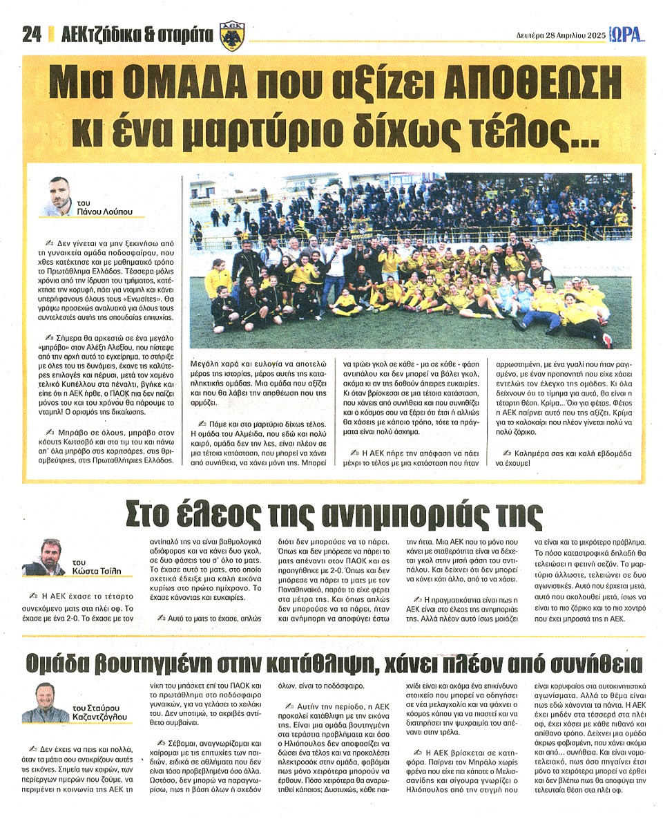 ΑΘΛΗΤΙΚΗ ΩΡΑ ΤΩΝ ΣΠΟΡ - 28 Απριλίου 2025