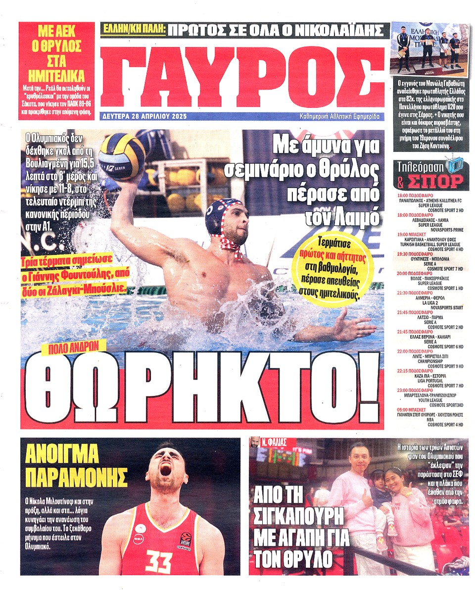 ΠΡΩΤΑΘΛΗΤΗΣ - 28 Απριλίου 2025
