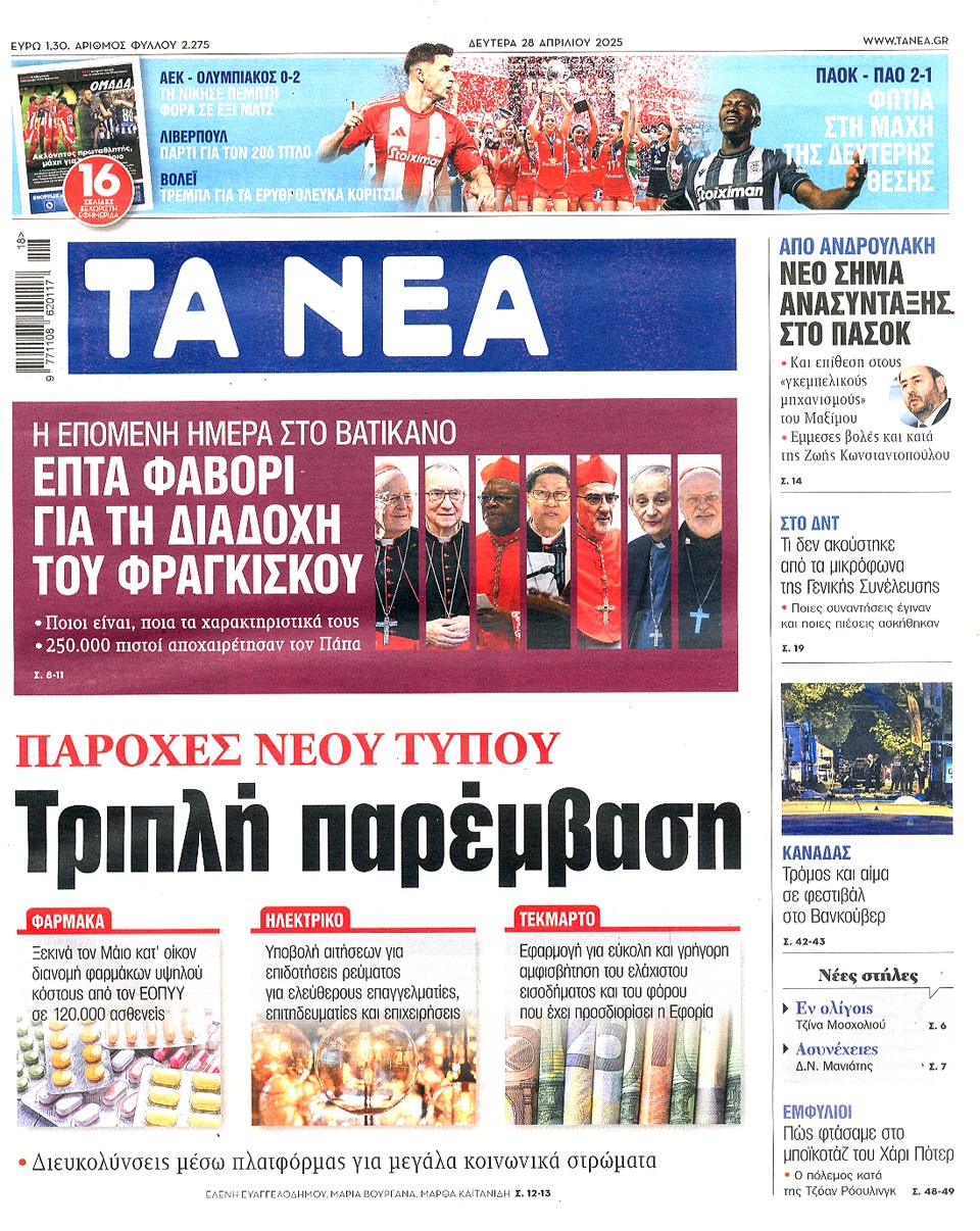 ΤΑ ΝΕΑ - 28 Απριλίου 2025