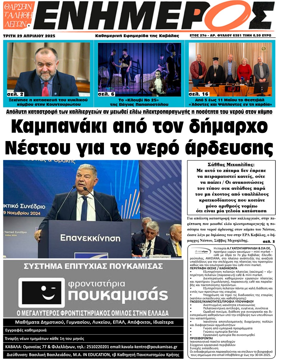 ΕΝΗΜΕΡΟΣ - 29 Απριλίου 2025