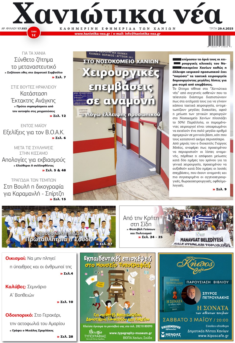 ΧΑΝΙΩΤΙΚΑ ΝΕΑ - 29 Απριλίου 2025