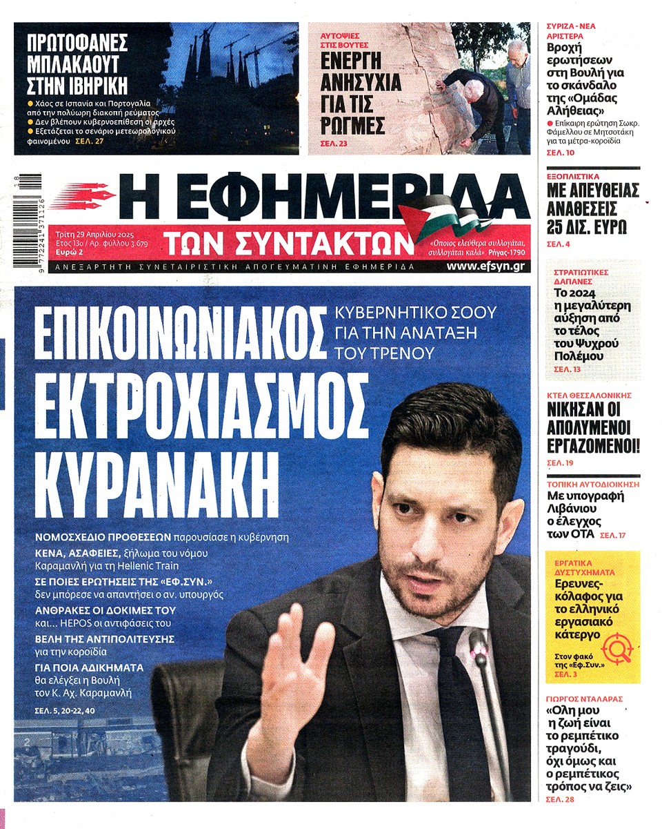 Η ΕΦΗΜΕΡΙΔΑ ΤΩΝ ΣΥΝΤΑΚΤΩΝ - 29 Απριλίου 2025