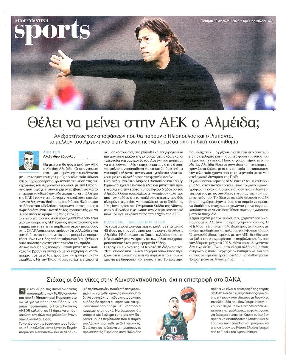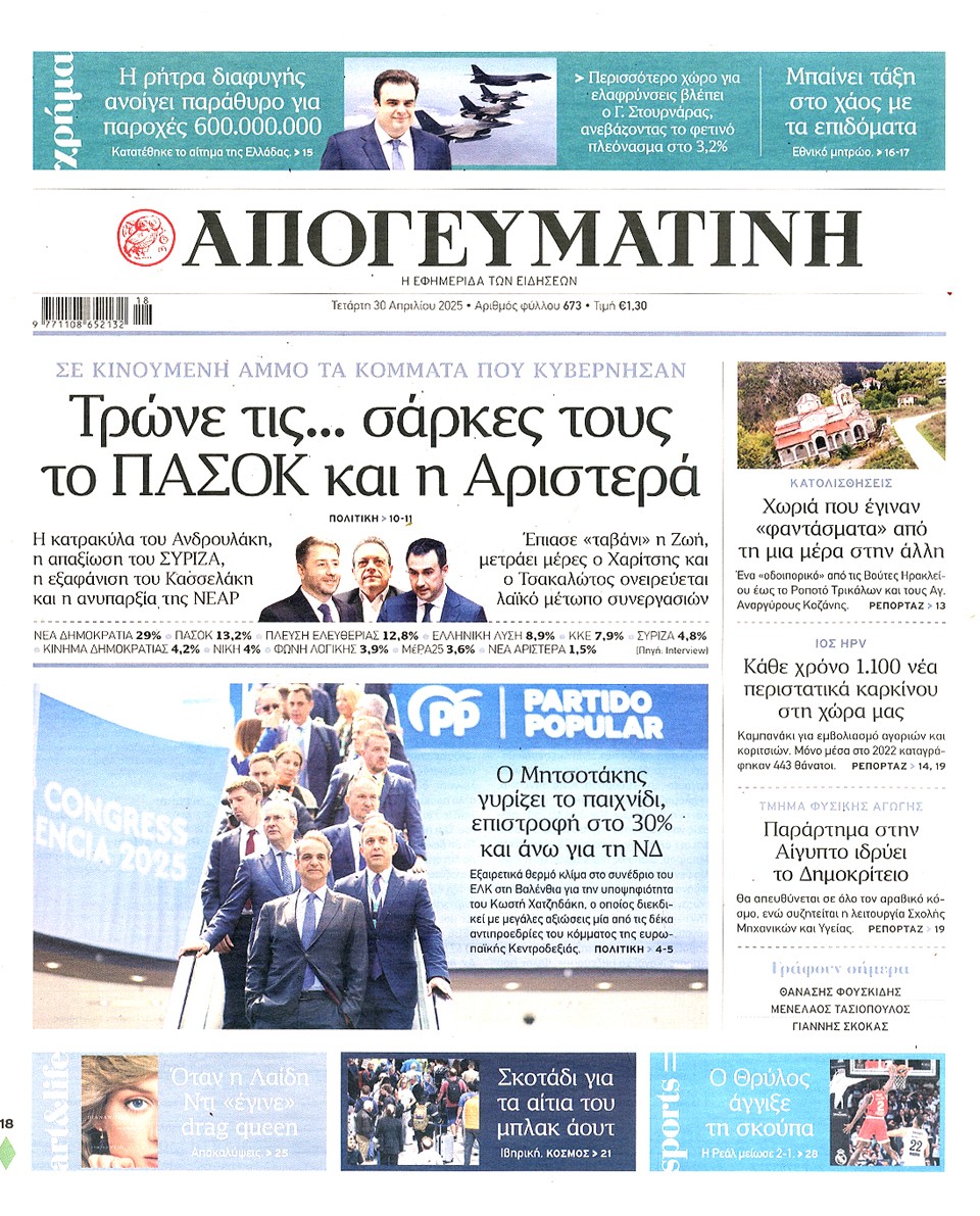 ΑΠΟΓΕΥΜΑΤΙΝΗ - 30 Απριλίου 2025
