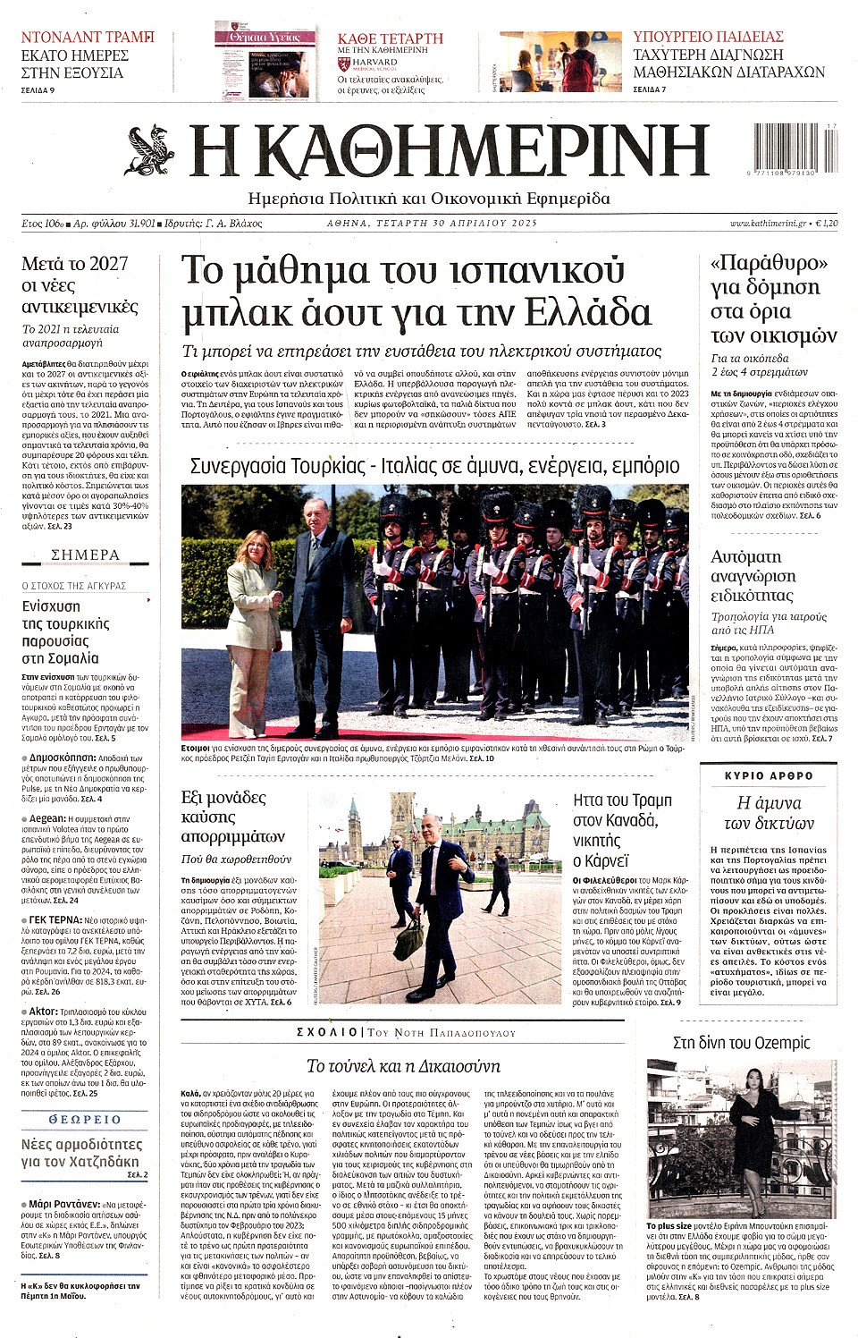 ΚΑΘΗΜΕΡΙΝΗ - 30 Απριλίου 2025