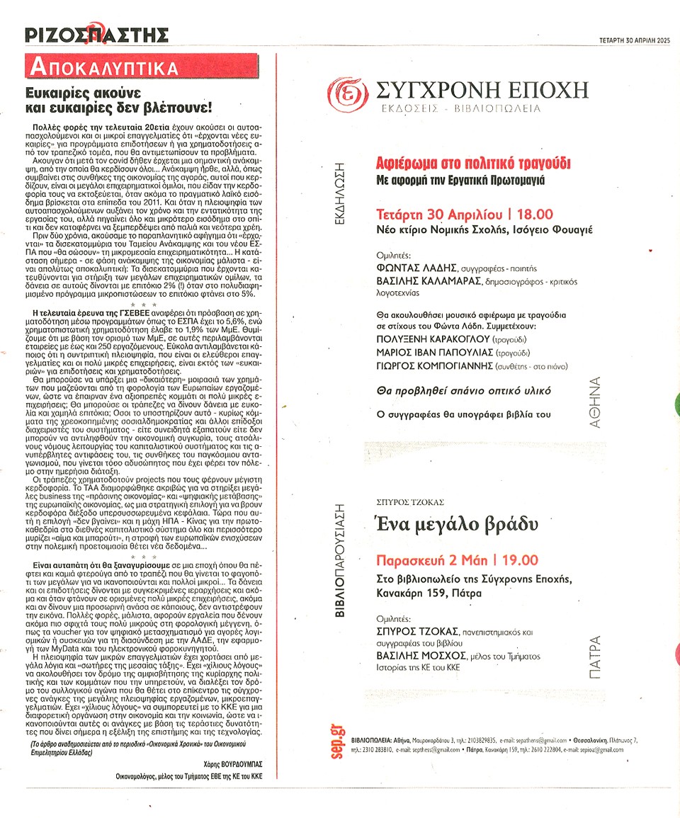 ΡΙΖΟΣΠΑΣΤΗΣ - 30 Απριλίου 2025