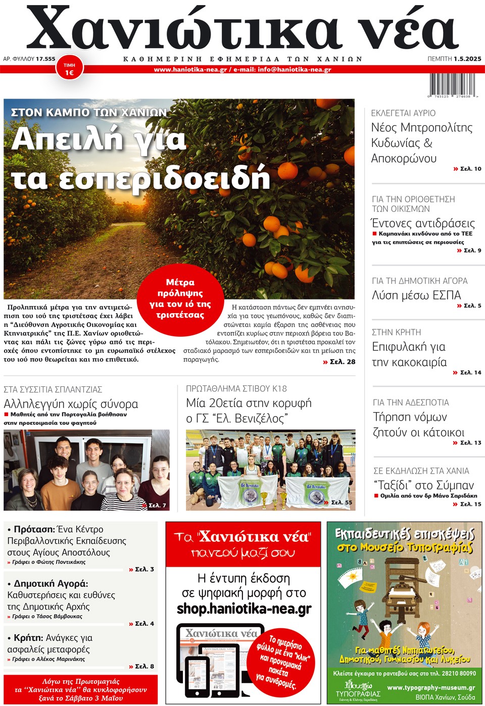 ΧΑΝΙΩΤΙΚΑ ΝΕΑ - 01 Μαΐου 2025