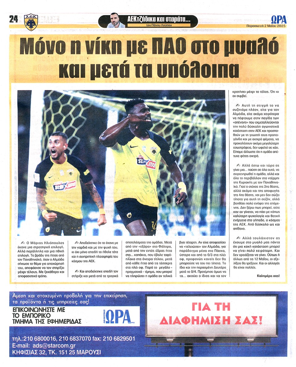 ΑΘΛΗΤΙΚΗ ΩΡΑ ΤΩΝ ΣΠΟΡ - 02 Μαΐου 2025