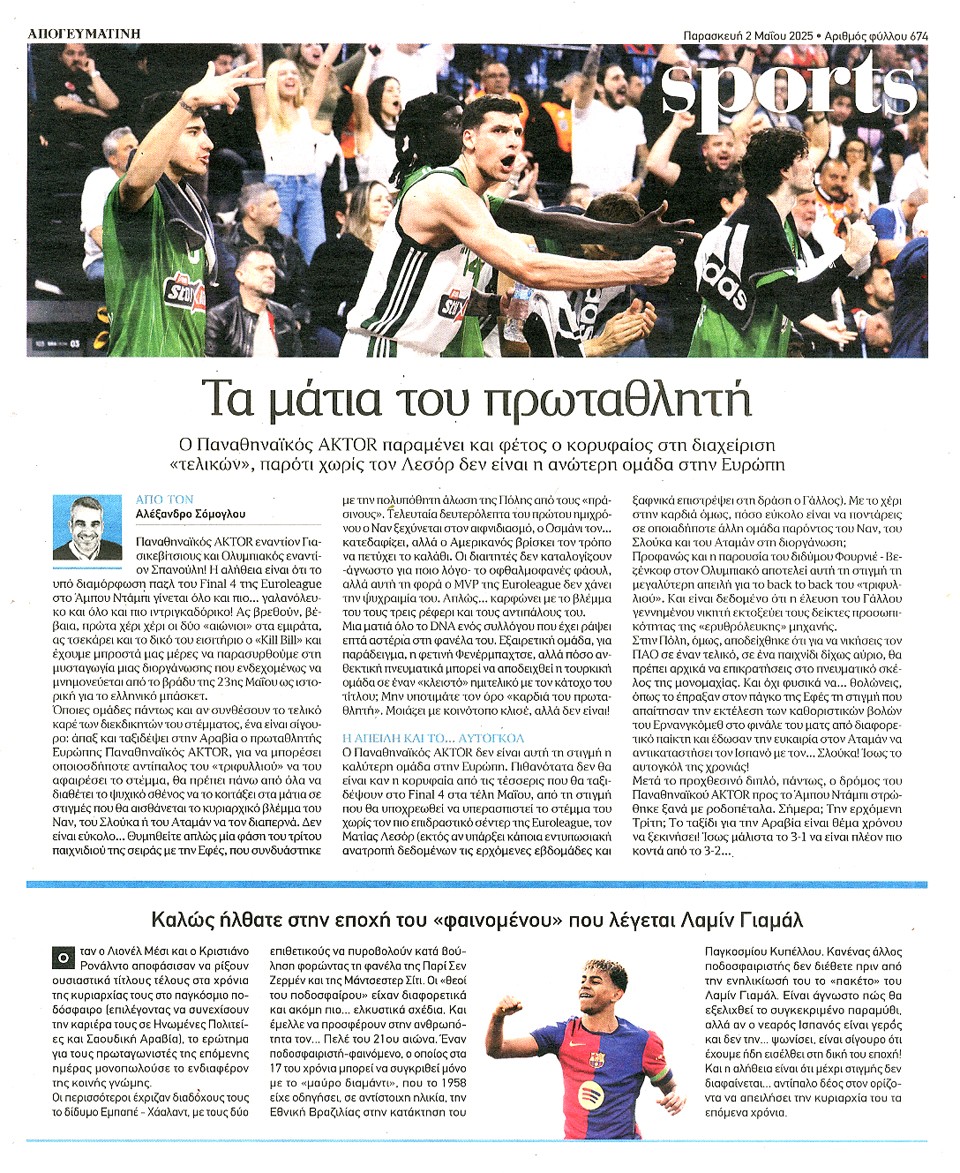 ΑΠΟΓΕΥΜΑΤΙΝΗ - 02 Μαΐου 2025