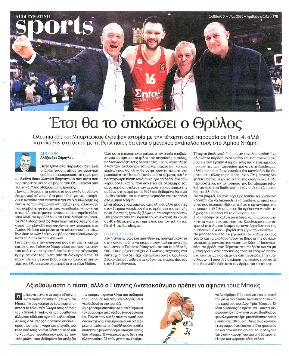 ΑΠΟΓΕΥΜΑΤΙΝΗ - 03 Μαΐου 2025