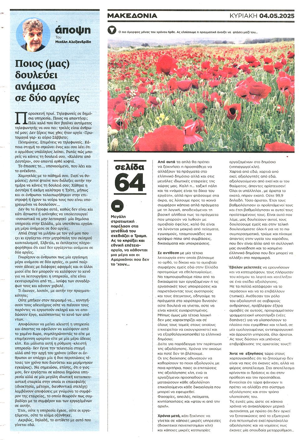 ΜΑΚΕΔΟΝΙΑ ΤΗΣ ΚΥΡΙΑΚΗΣ - 04 Μαΐου 2025
