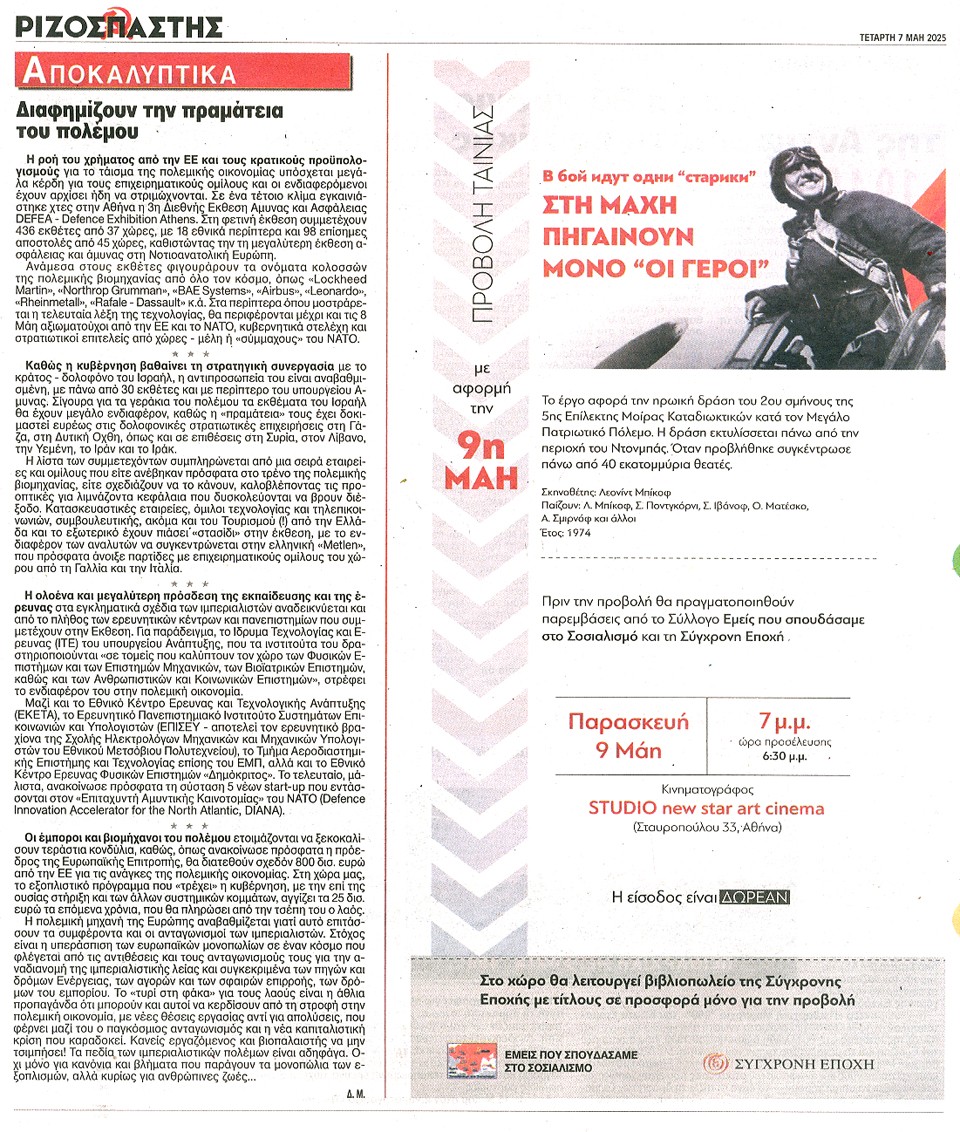 ΡΙΖΟΣΠΑΣΤΗΣ - 07 Μαΐου 2025