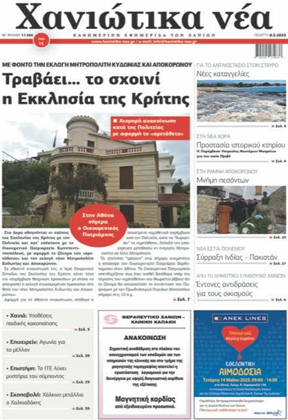 ΧΑΝΙΩΤΙΚΑ ΝΕΑ - 08 Μαΐου 2025