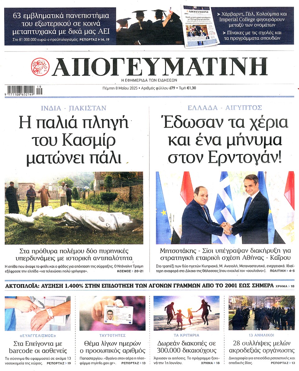 ΑΠΟΓΕΥΜΑΤΙΝΗ - 08 Μαΐου 2025