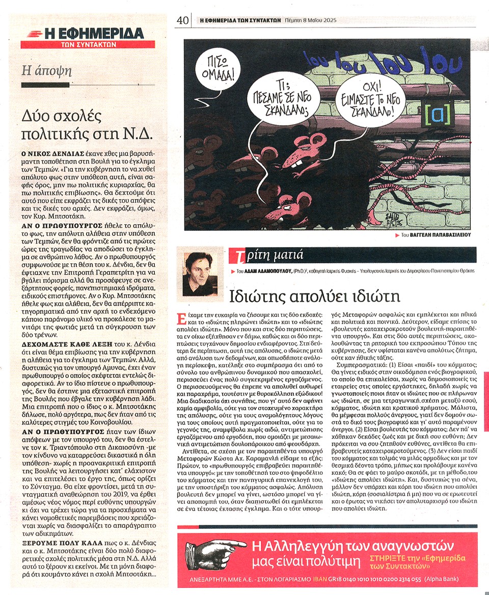 Η ΕΦΗΜΕΡΙΔΑ ΤΩΝ ΣΥΝΤΑΚΤΩΝ - 08 Μαΐου 2025