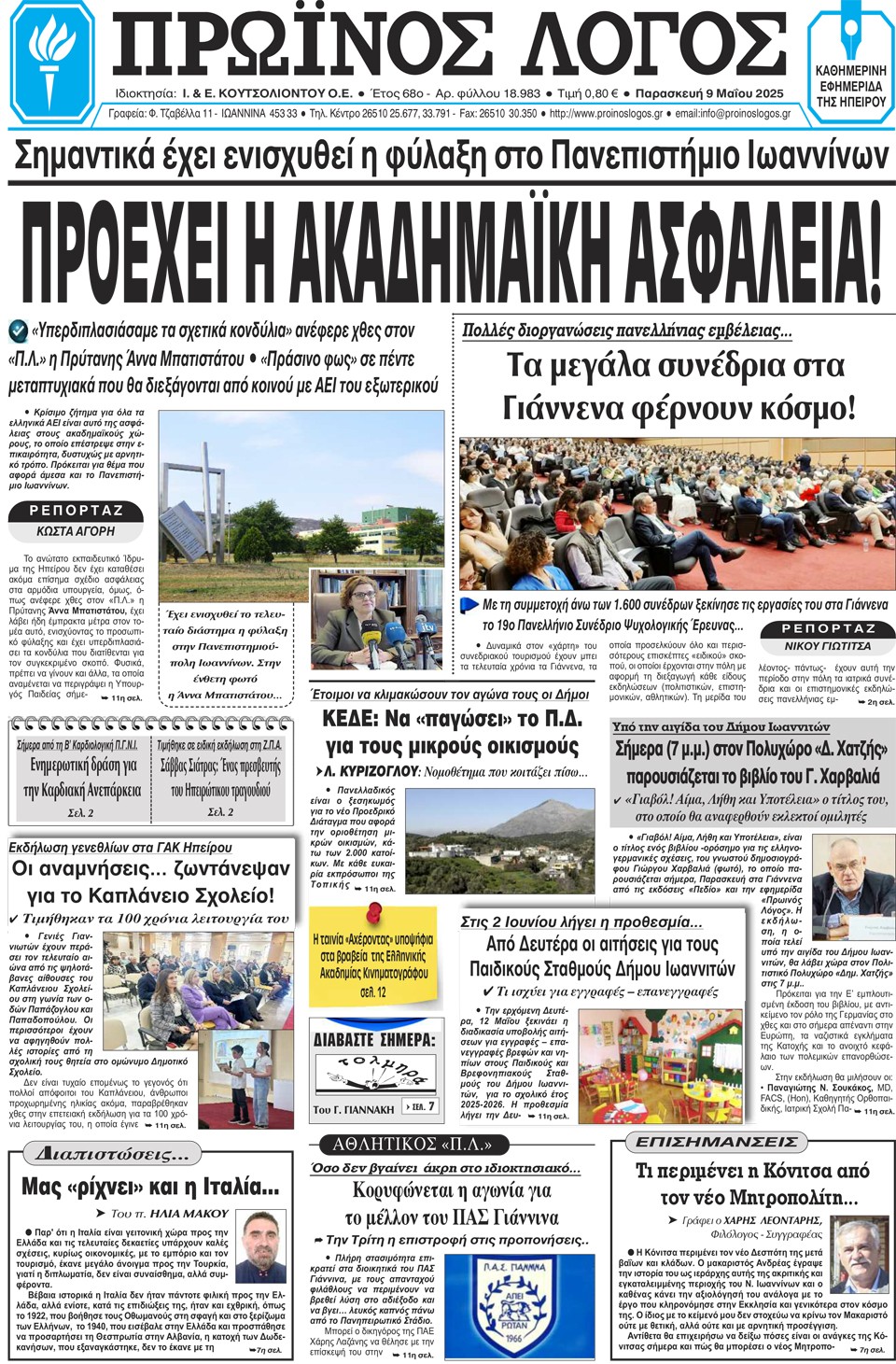 ΠΡΩΙΝΟΣ ΛΟΓΟΣ - 09 Μαΐου 2025