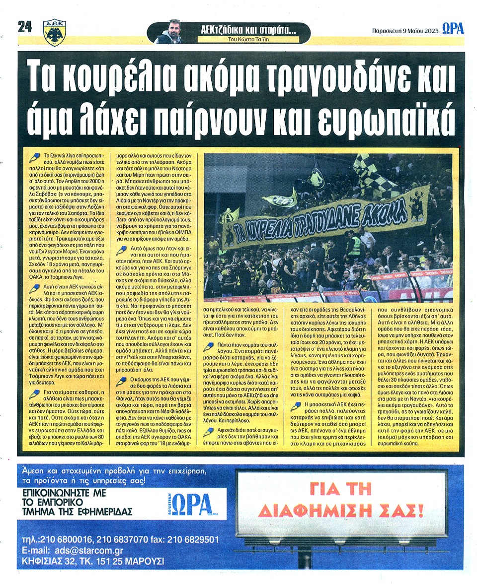 ΑΘΛΗΤΙΚΗ ΩΡΑ ΤΩΝ ΣΠΟΡ - 09 Μαΐου 2025