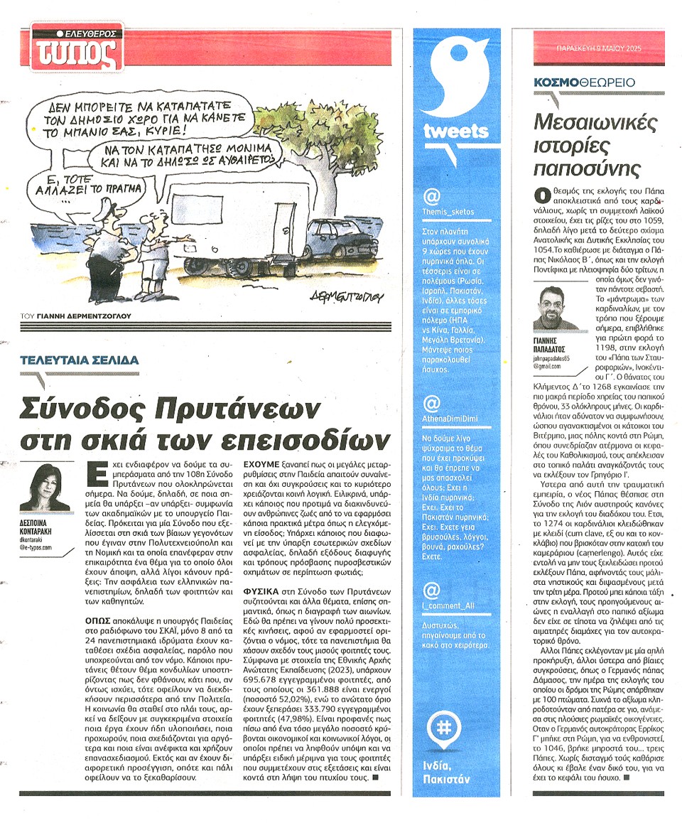 ΕΛΕΥΘΕΡΟΣ ΤΥΠΟΣ - 09 Μαΐου 2025