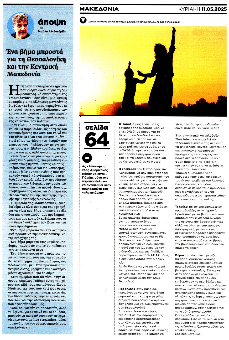 ΜΑΚΕΔΟΝΙΑ ΤΗΣ ΚΥΡΙΑΚΗΣ - 11 Μαΐου 2025