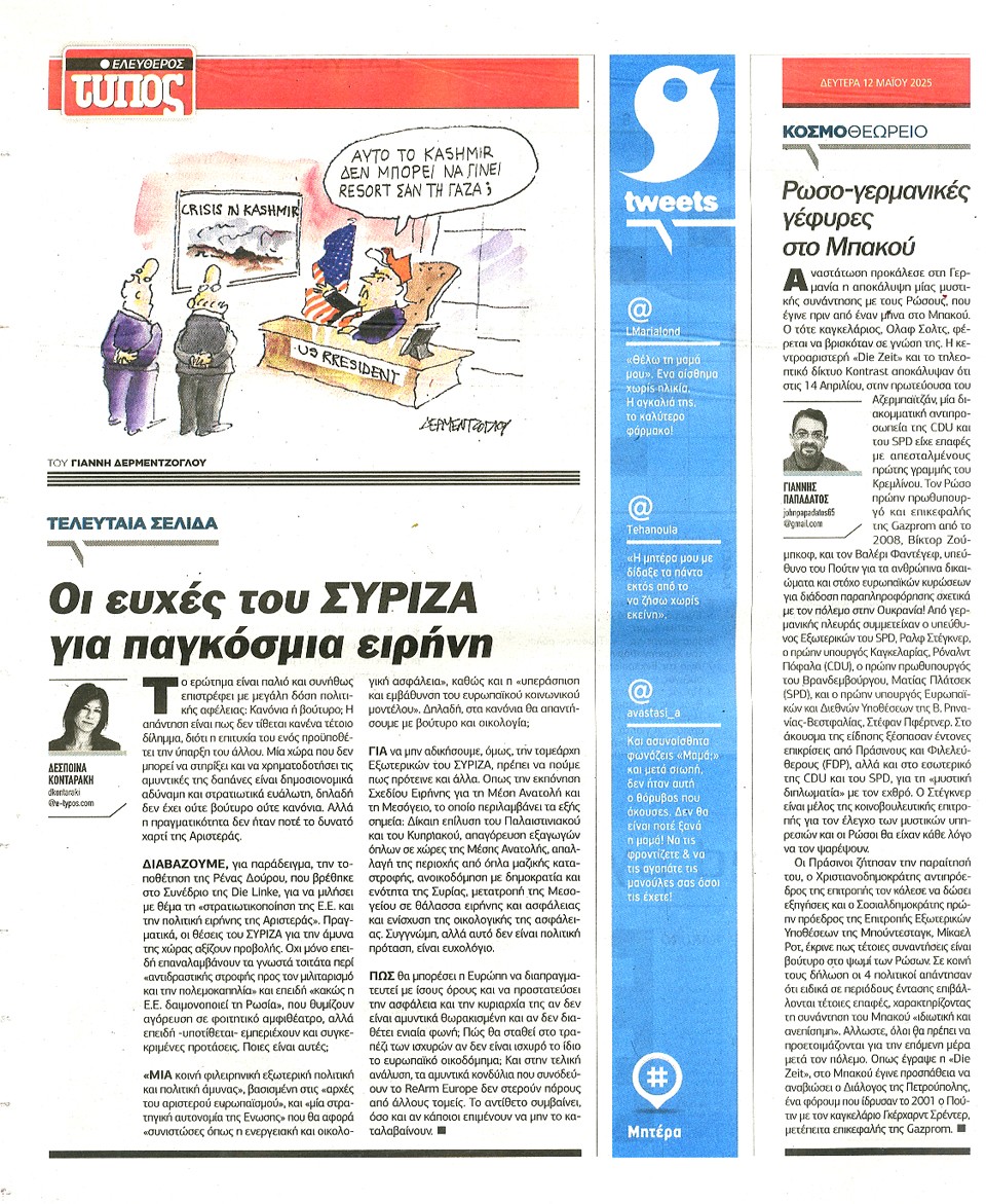 ΕΛΕΥΘΕΡΟΣ ΤΥΠΟΣ - 12 Μαΐου 2025