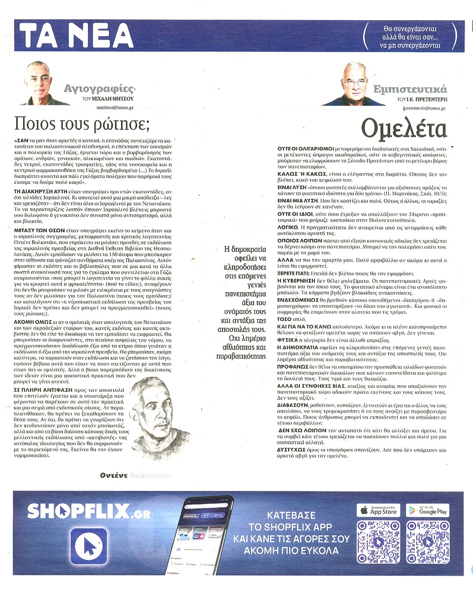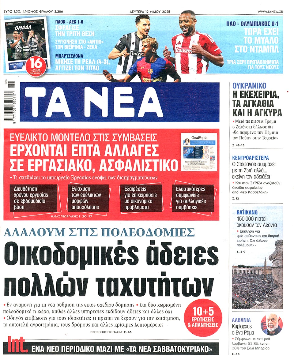 ΤΑ ΝΕΑ - 12 Μαΐου 2025