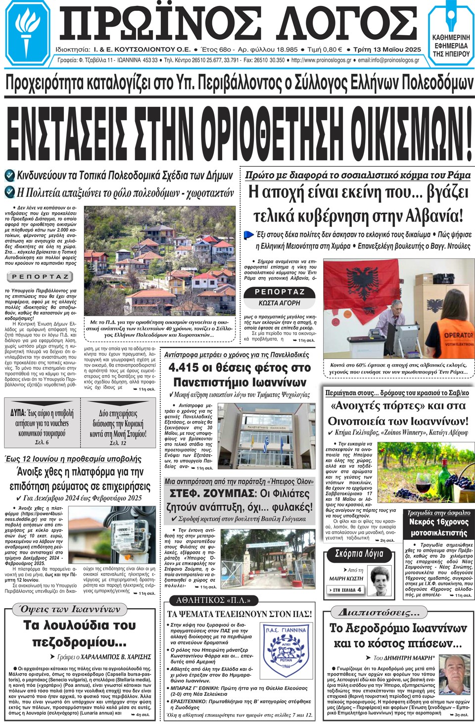 ΠΡΩΙΝΟΣ ΛΟΓΟΣ - 13 Μαΐου 2025