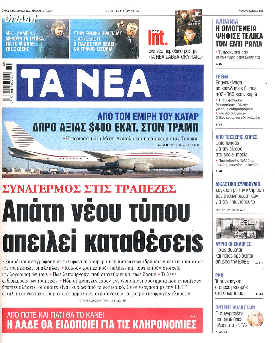 ΤΑ ΝΕΑ - 13 Μαΐου 2025