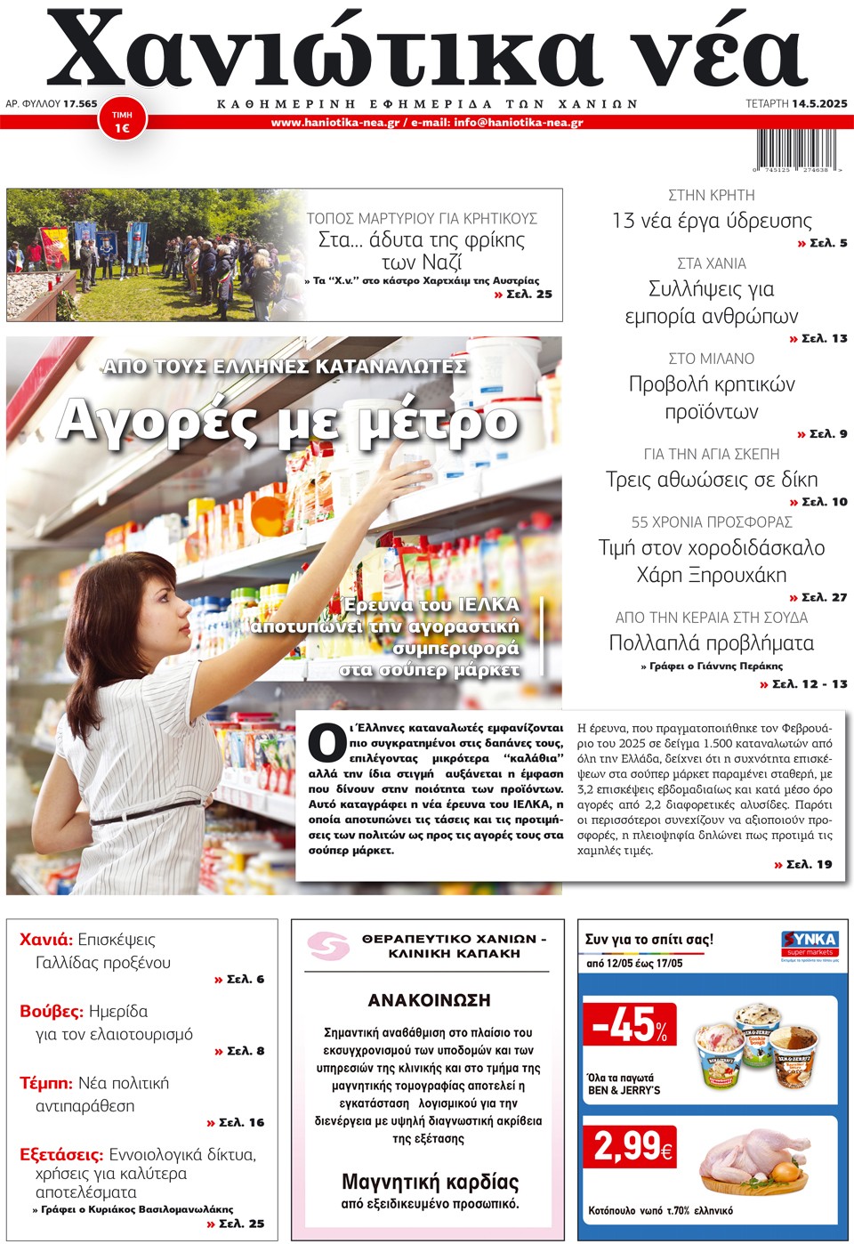 ΧΑΝΙΩΤΙΚΑ ΝΕΑ - 14 Μαΐου 2025