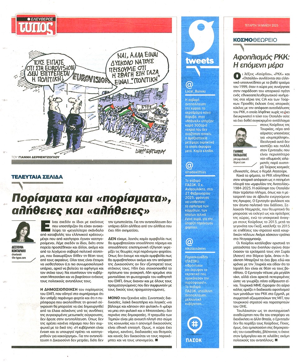 ΕΛΕΥΘΕΡΟΣ ΤΥΠΟΣ - 14 Μαΐου 2025