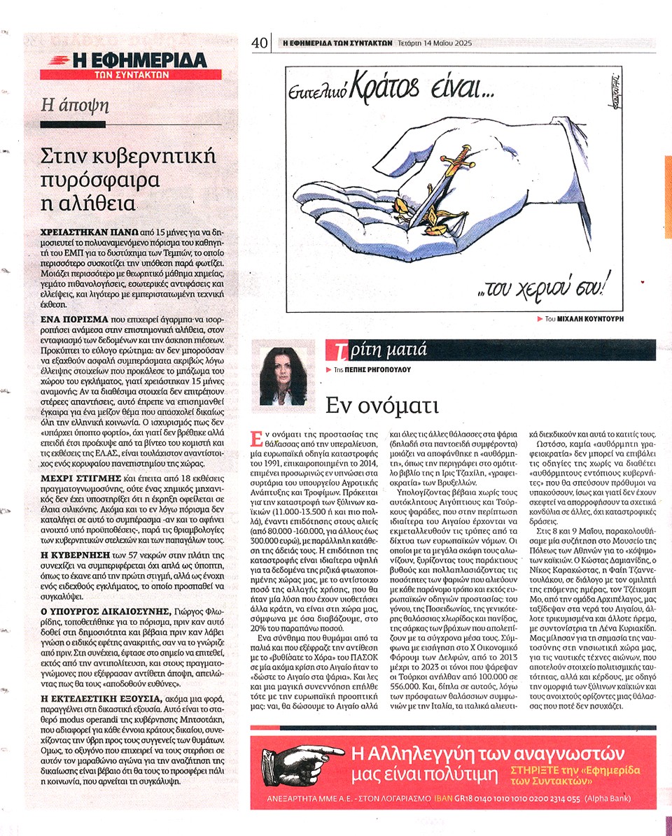 Η ΕΦΗΜΕΡΙΔΑ ΤΩΝ ΣΥΝΤΑΚΤΩΝ - 14 Μαΐου 2025