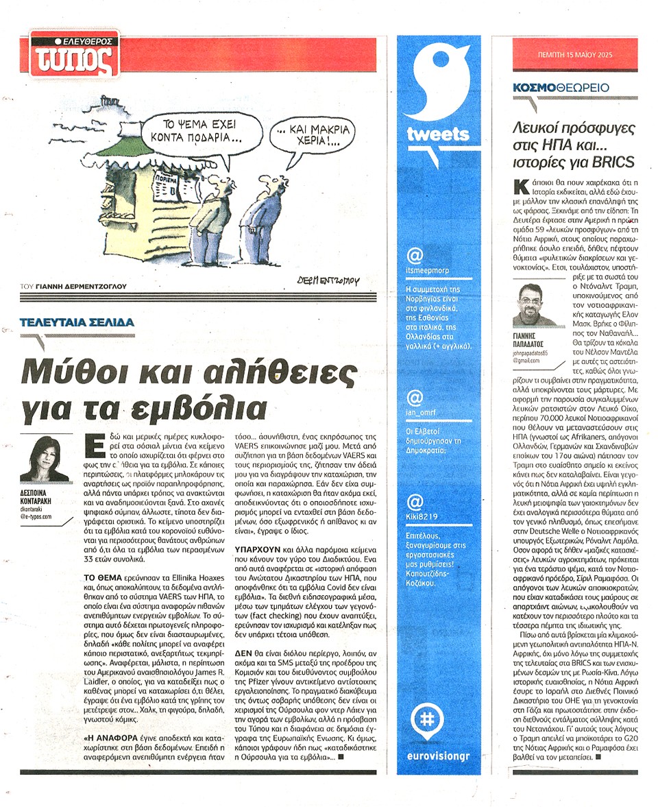 ΕΛΕΥΘΕΡΟΣ ΤΥΠΟΣ - 15 Μαΐου 2025