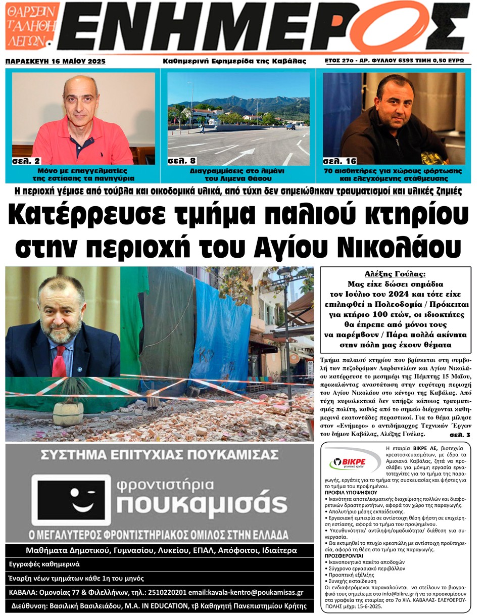 ΕΝΗΜΕΡΟΣ - 16 Μαΐου 2025