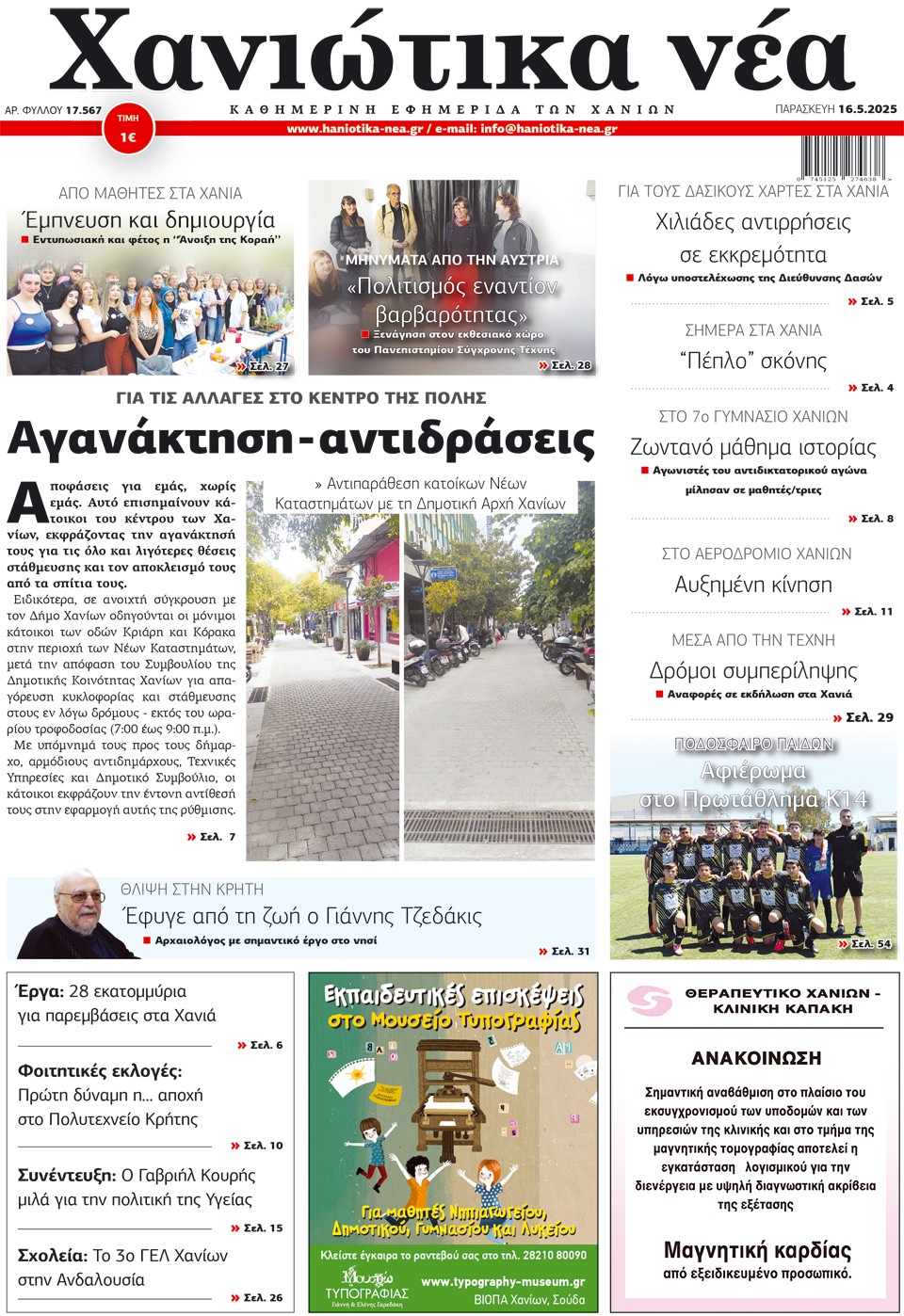 ΧΑΝΙΩΤΙΚΑ ΝΕΑ - 16 Μαΐου 2025
