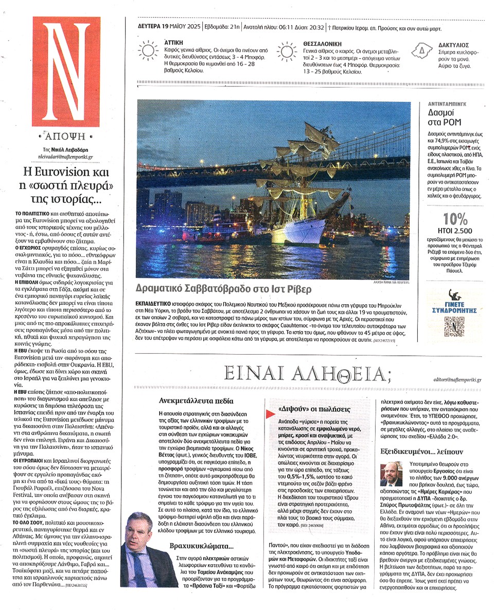 ΝΑΥΤΕΜΠΟΡΙΚΗ - 19 Μαΐου 2025